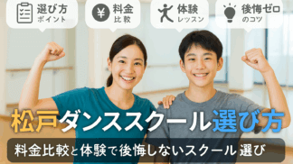 松戸でダンススクールを探しているけれど、「月謝と回数制、どちらが自分向き?」「駅から本当に通いやすい?」と迷っていませんか。実は選び方のコツを押さえるだけで、初年度コストや通学負担の不安はぐっと小さくできます。さらに体験や見学でのチェック視...