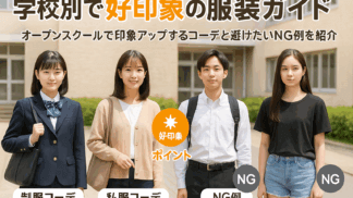 「オープンスクールで何を着れば浮かない?」と迷っていませんか。進学情報サイトの参加者アンケートでは、移動が多いプログラムが約6~8割を占める学校もあり、靴やバッグ選びで当日の快適さが大きく変わります。さらに学校案内には服装の指定が明記される...
