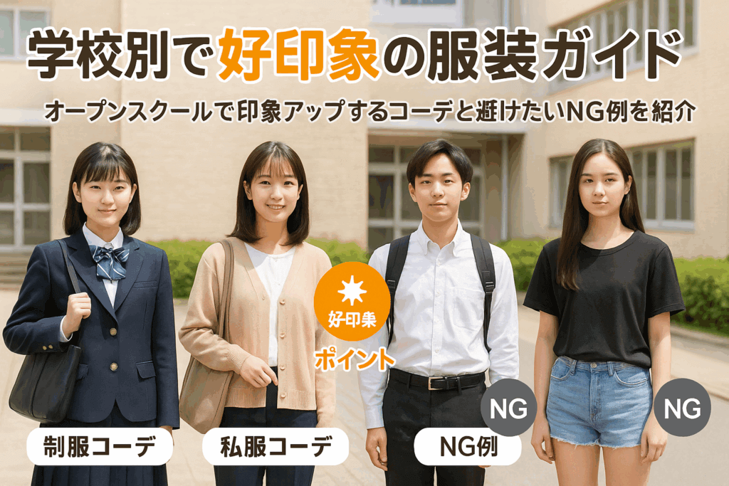 一方で「制服で行くべき?私服で大丈夫?」という悩みも定番。私たちは中高・大学・専門学校の案内記載や広報への照会、保護者会の聞き取りから、校種別の実態と失敗例を整理しました。体験授業や個別相談の場面別に、清潔感と機能性の両立ポイントを具体的に示します。